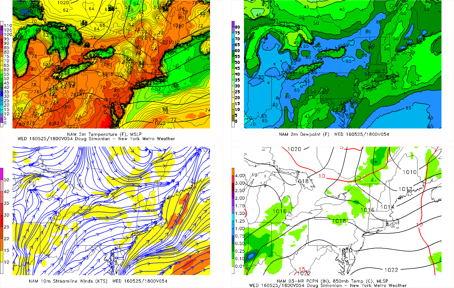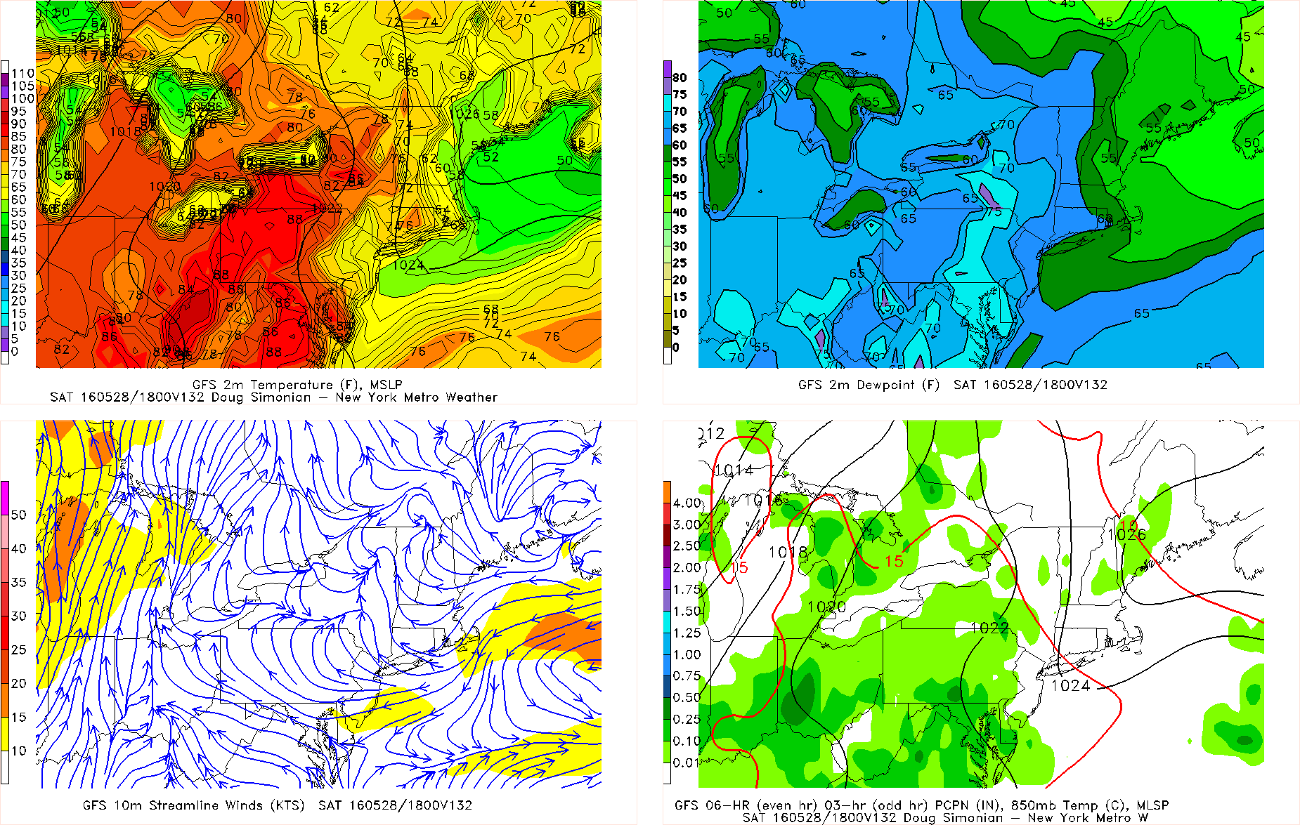 Model guidance has been consistent in tracking the surface low south of the region — over the Western Atlantic. Some more clouds and showers are likely to keep eastern sections cooler on Tuesday, especially over Long Island and Connecticut. Further west over New York City, New Jersey and the Lower Hudson Valley, more instability again could help trigger showers and thunderstorms. High temperatures will likely reach the lower to middle 70’s west of the Hudson River.