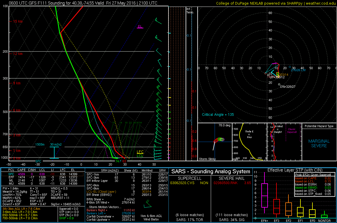 6z GFS sounding (courtesy of Nexlab) showing a remnant EML with 4500+ J/kg of surface based cape over Central New Jersey Friday afternoon. But very weak shear and forcing.