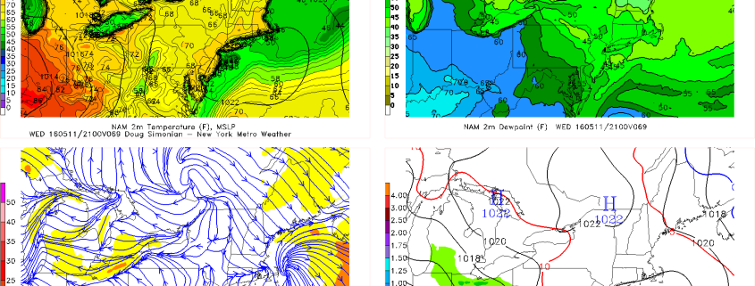 First off, today will be a beautiful day. High pressure and confluence from the upper-level low over Southeast Canada will keep a frontal boundary to the south of our region. More high to mid-level clouds over Central and Southern New Jersey are expected to remain closer to the frontal boundary, while sunshine dominates farther north over Northern NJ and NYC. West-southwest winds and deep mixing between 750mb and 800mb will cause temperatures to rise into the lower to middle 70s this afternoon. Breezy conditions also likely this afternoon with wind gusts to near 35mph possible. These winds will also likely hold off any sea-breeze to later in the afternoon, so many coastal locations will see warm temperatures as well.