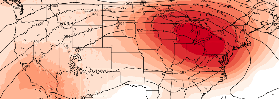 The heat and humidity, in fact, will build over the next few days. Highs in the middle to upper 90’s are expected away from the shores on both Thursday and Friday, with hot temperatures lingering through the weekend. Heat index values are likely to approach the lower 100’s. This will only be a predecessor to the main show, however, as mid level heights this week pale in comparison to what modeling indicates for the several days that follow.
