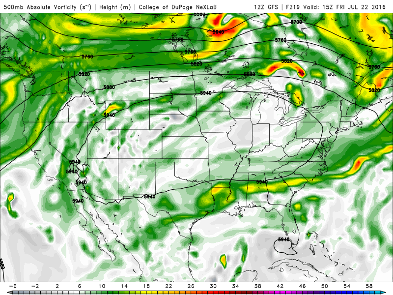 Medium range ensemble support, at this range, is actually quite remarkable. Both the GFS and ECMWF ensemble means (the averages of multiple-member ensemble runs) show a tremendous ridge over the Central US, pulsing and expanding northeastward toward the Great Lakes and Northeast. While the brunt of the unbearable heat will likely miss our area to the south and west, the heat will still be felt. More notably, however, is the fact that our area will likely lie along the periphery of this ridge, in the path of multiple atmospheric disturbances.