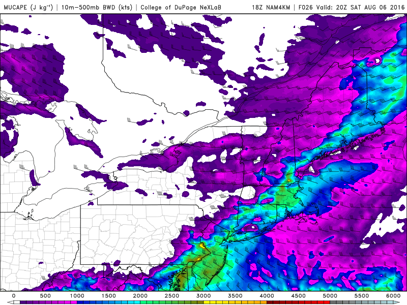 This front will begin sagging southward on Saturday morning and afternoon, with showers and thunderstorms likely to develop near the area during the early afternoon. Moderate instability in the atmosphere is expected to juxtapose with favorable wind shear to support the development of these strong and severe storms, which will sink southeastward through NJ, NYC and Long Island.