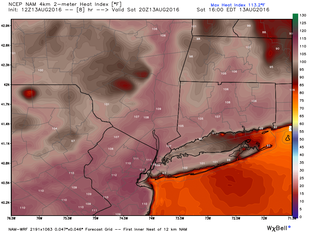 Oppressive heat and humidity will continue through Sunday with a strong upper-level ridge over region. Temperatures are already approaching the upper 80s or lower 90s late this morning. High temperatures will be middle to upper 90s both Saturday and Sunday, over much of the region. Heat index values will be between 105F to 110F this afternoon. Therefore the National Weather Service now has excessive heat warnings for most of the region through Sunday. Take precautions to stay well-hydrated, while outdoors this weekend.