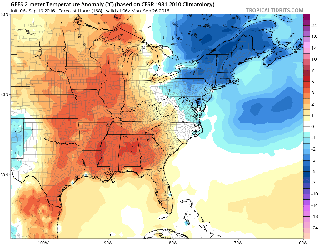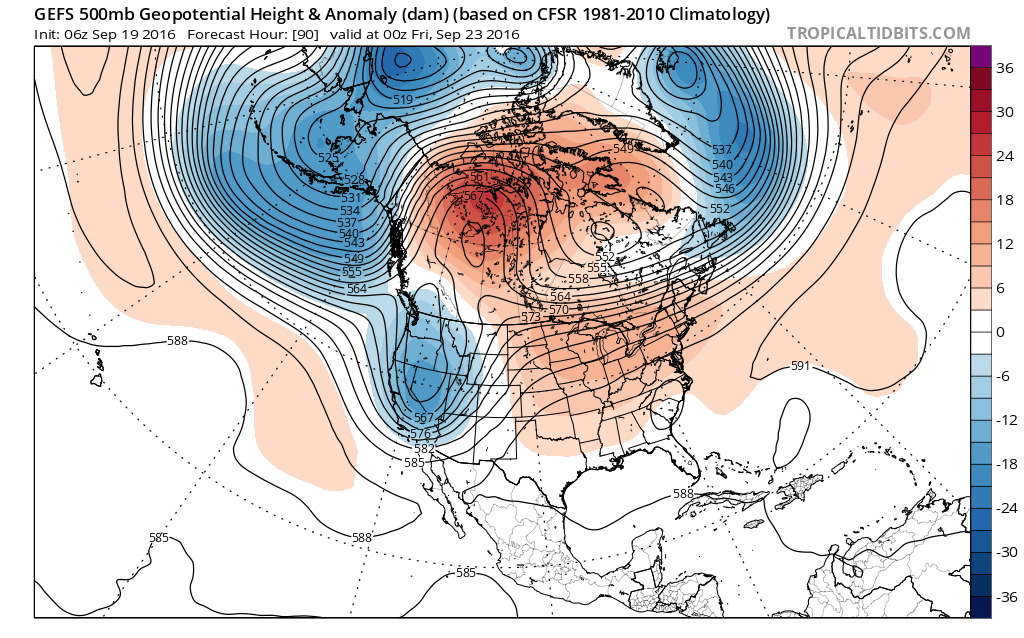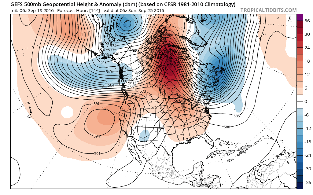 Then model and ensemble guidance are showing a more blocking with a ridge over Central Canada and Hudson Bay. This cause a trough to dig deeper over Southeast Canada and Northeast. This will strong confluence and high pressure pushing a more late Autumn-like cold front on Saturday. Moisture will likely be very limited ahead of this front. So not much rainfall if any, is expected at this time, with the frontal passage. Temperatures on Saturday may still get into upper 70s or near 80 before the cold front arrives.
