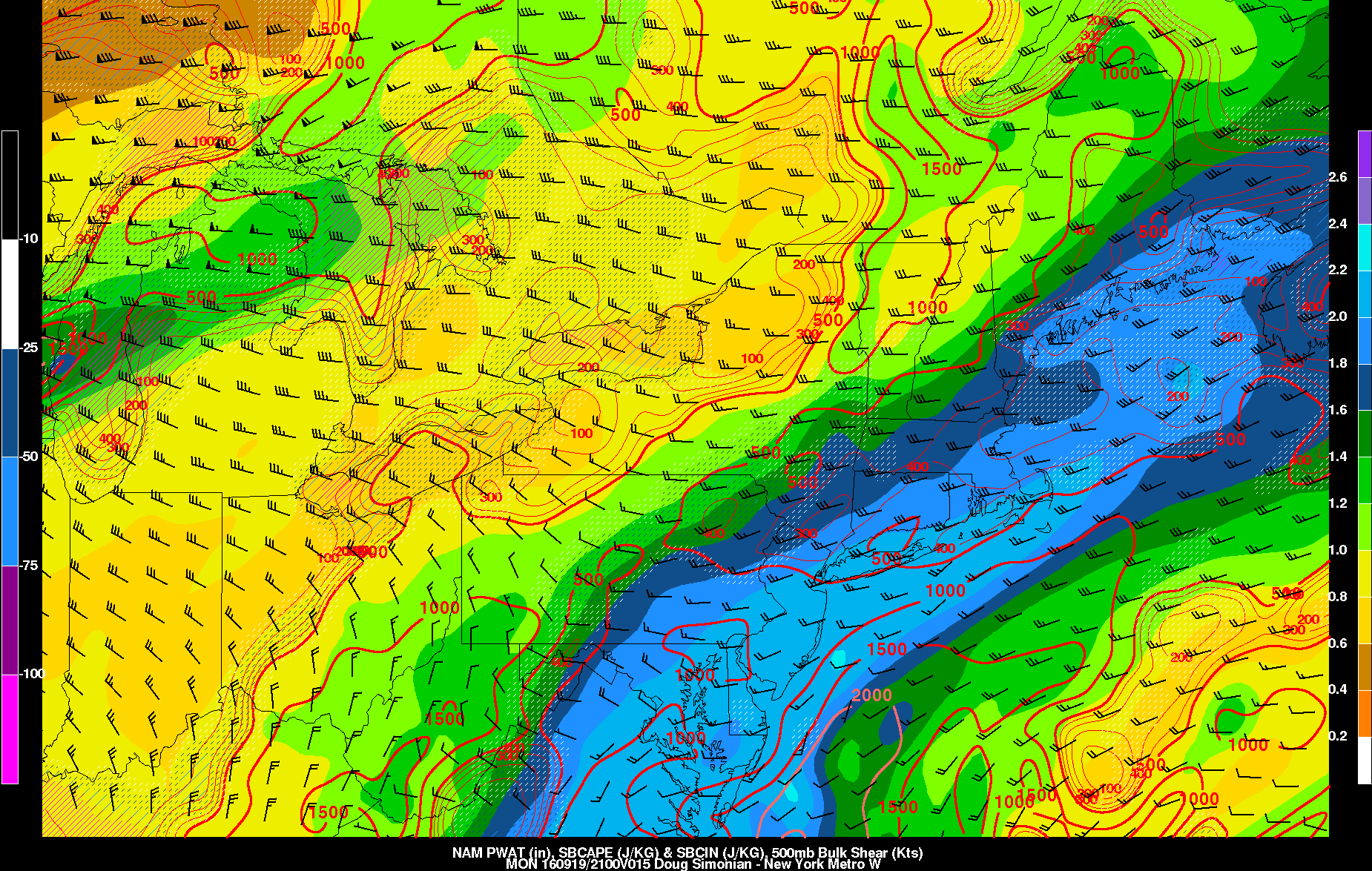 The NAM models showing high precipitable water values and more instability later this afternoon and evening.