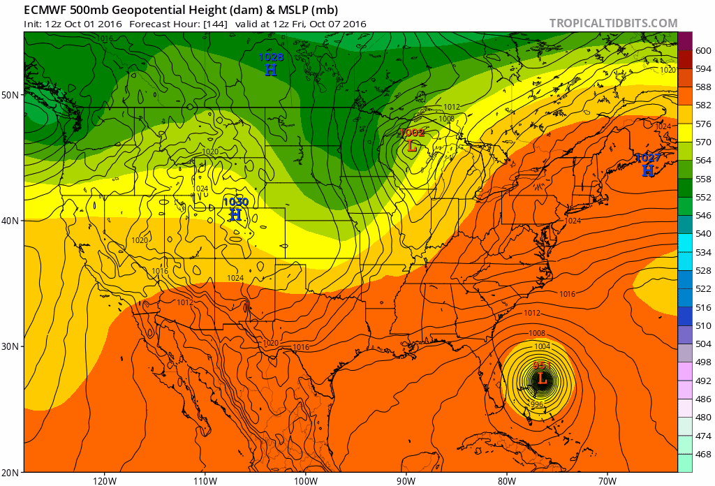 On the other hand, if the over the Northwest Atlantic is strong, enough it could force Matthew and through both to phase. This will bring Matthew center much closer to the East Coast. The GFS has been scenario for earlier this week. But past few since Thursday night, it has Matthew turning away as the trough approaches, with weaker ridge over the Atlantic. The ECMWF model has been much slower and further south with Matthew this week. It’s hasn’t been as deep with initial weak upper-level trough cause Matthew to turn north faster. So this give the trough and blocking ridge to move east, give Matthew more an escape route out to sea.