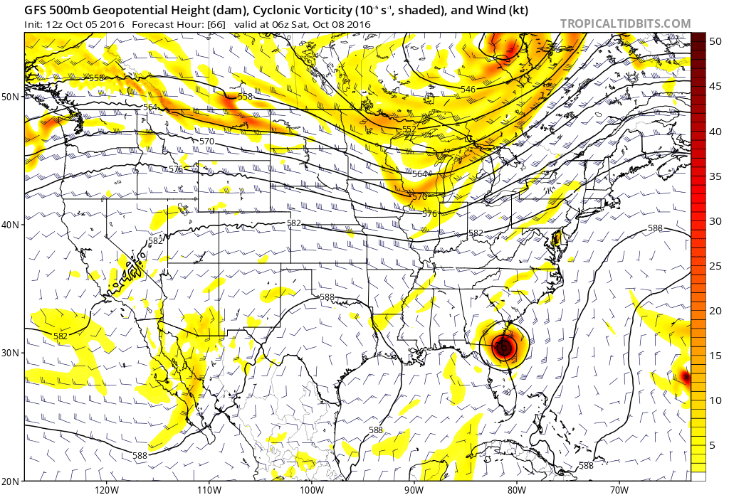 A major change in modeling later this weekend has opened the window for Matthew to turn eastward after it reaches the latitude of the Carolinas. Previously, some guidance had suggested a deep trough would work into the Central United States, aiding in upstream ridging and guiding Matthew further northward. This would allow the two to interact and phase, with Matthew and his associated moisture being pulled up the East Coast.
