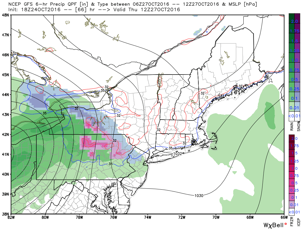 While widespread accumulations of snow are not likely, it appears plausible that the atmosphere could briefly support light to moderate frozen precipitation for a period of time across the interior. Precipitation should change to rain rather quickly as warm air advection surges into the Northeast, with a period of heavy rain for most interests early on Friday morning.