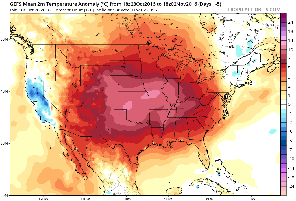 GFS Ensembles showing much above normal temperatures across an extremely large area during the first week of November.