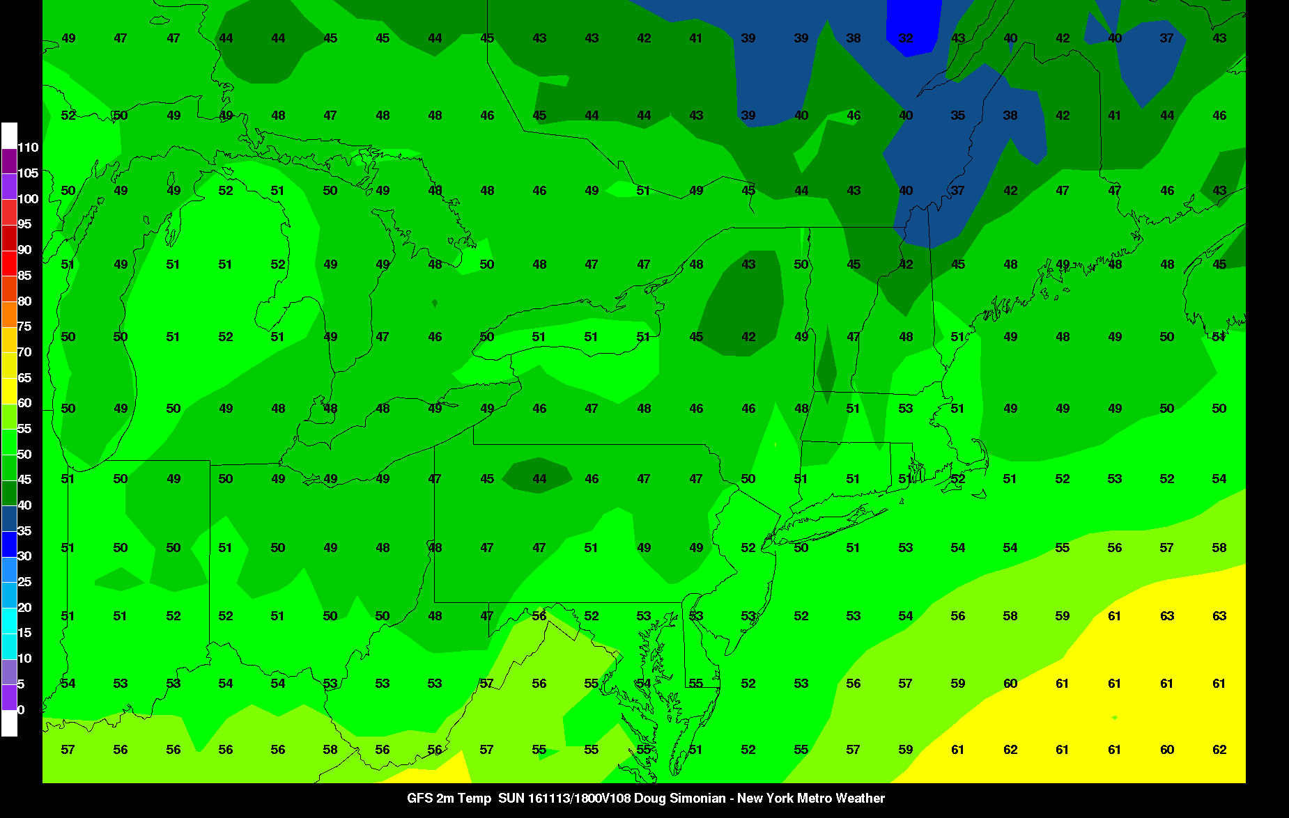 - Temperatures will be little warmer- perhaps closer to 60 on Friday, before a cold front moves through region.