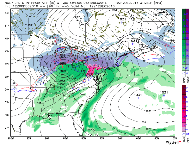 Wintry precipitation should spread into the Northeast US during the early part of next week, with warming gradually occurring and changing areas in the Northern Mid Atlantic and possibly Southern New England over to rain. But, again, the exact track and intensity of the storm will determine where these gradients and demarcation lines set up — and who gets wintry precipitation.