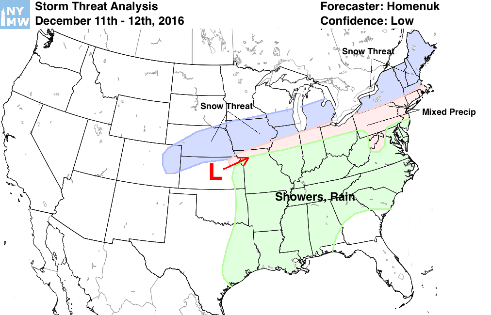 There is likely to be a sharp gradient and demarcation line between wintry precipitation and rain with this storm system, as the disturbance rides along a thermal (temperature) gradient which is situated from west to east throughout the country. We spoke about this yesterday in our discussion. This gradient will guide the storm eastwards towards the Northeast US by early next week.