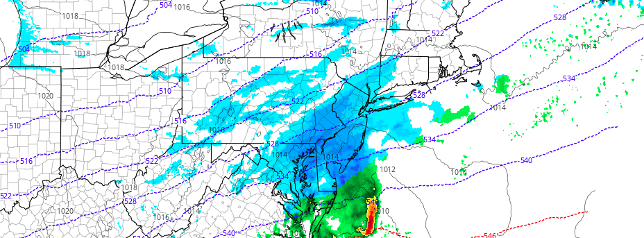 However, with some lift fro, an upper-level jet streak overhead, snow is likely to spread throughout parts of the Mid Atlantic and Southern New England later tonight into Thursday morning. Most of the snow is expected to fall on the lighter side of the intensity scale, with liquid totals only expected to reach .10″ – .25″.