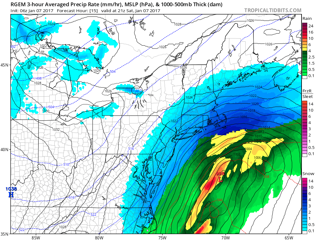Low pressure off the Southeast coast early this morning, will track quickly northeast today. Snow will overspread from the southwest to northeast across most of the region this morning. The low will slowly intensify today and have a lot moisture from the Gulf of Mexico and Atlantic Ocean. But the low track well south and east of 40/70 benchmark. This will keep the brunt of the storm mostly offshore.