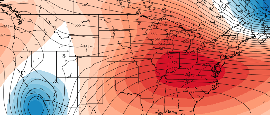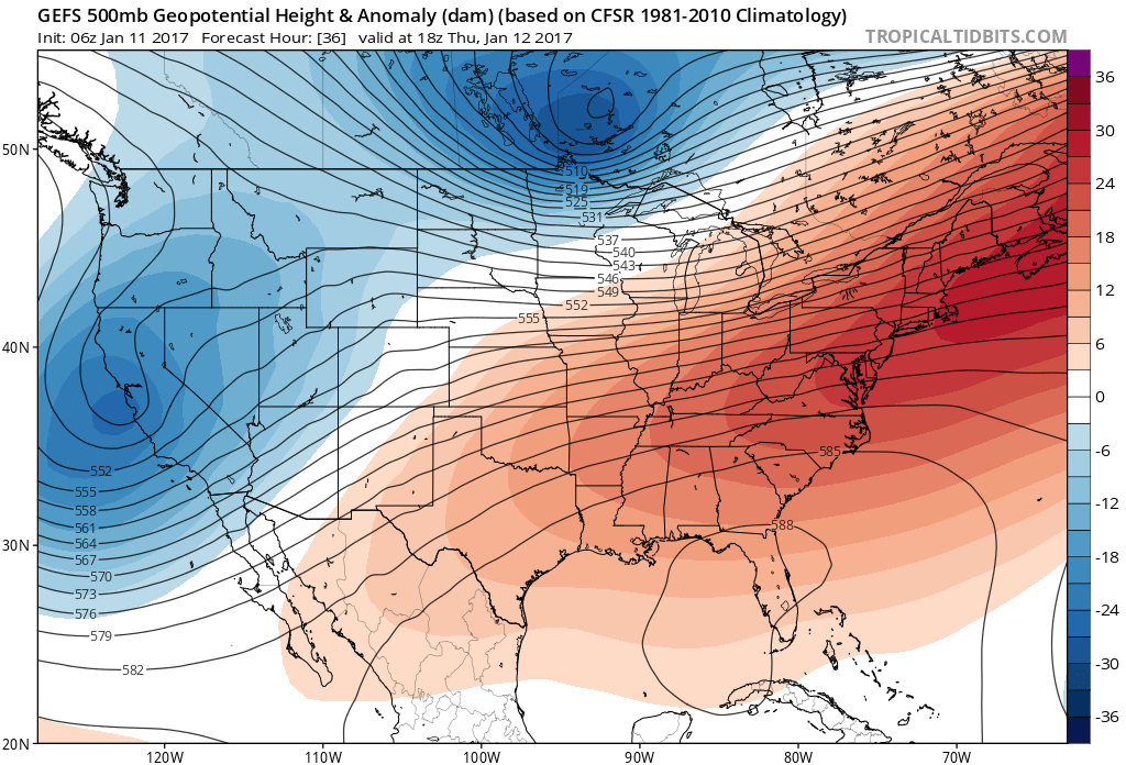 The GEFS at 500mb level showing a strong SE ridge over the East Thursday