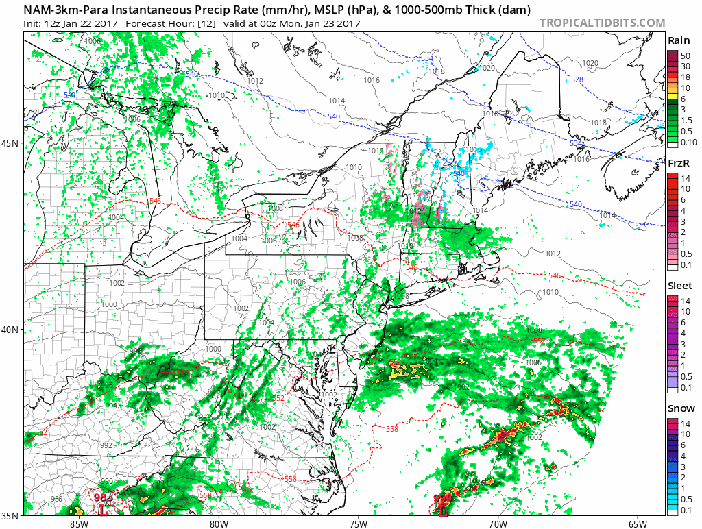 Gradually, a surface low pressure is forecast to develop from the Delmarva coast northeastwards off the coast of the Mid Atlantic. A large area of moisture will surge northwards up the East Coast, with significant lift in the atmosphere tapping into this moisture and aiding in the development of very heavy rain. Rainfall totals of 1-3″ are possible — with some flooding in low lying and poor drainage areas.