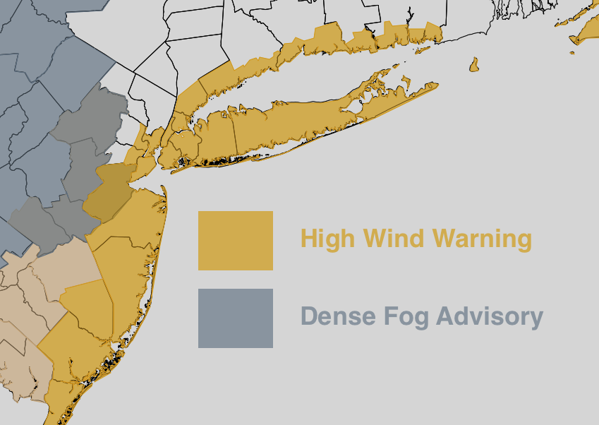 This will be especially true near and along the coasts of New Jersey and New York. The National Weather Service has issued High Wind Warnings for coastal areas of New York, New Jersey, and Connecticut. The potential for wind gusts over 60mph exists here — some of these winds could be damaging. The easterly, onshore winds could also result in minaret moderate coastal flooding during high tides on Monday and Tuesday.