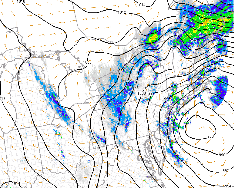 Surface low pressure off the NJ Coast producing showers in the area today.