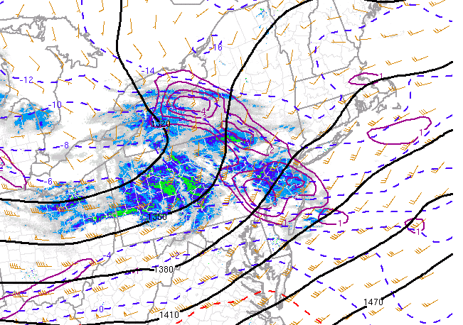 Frontogenesis, or gradients or temperature and wind in the atmosphere, is enhanced at the 850mb level as well as visualized on mesoscale analysis in the Northeast this morning. This frontogenesis/enhanced lift will shift northeast into New England as the afternoon goes on, so snowfall will become more sporadic over NJ and NY this afternoon.