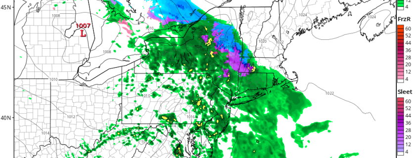 Multiple rounds of precipitation are expected through tonight. Regional analysis showed a low pressure system and associated mid level lows (in the middle layers of the atmosphere) over the Eastern Great Lakes. This is pumping south/southwesterly winds into the area and warming up these atmospheric layers. Therefore, most areas are experiencing plain rain. The surface and low level atmosphere temperature in the high elevations of Eastern NY and CT, however, is colder, allowing for sleet and freezing rain.