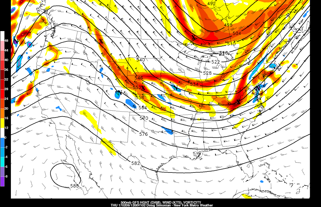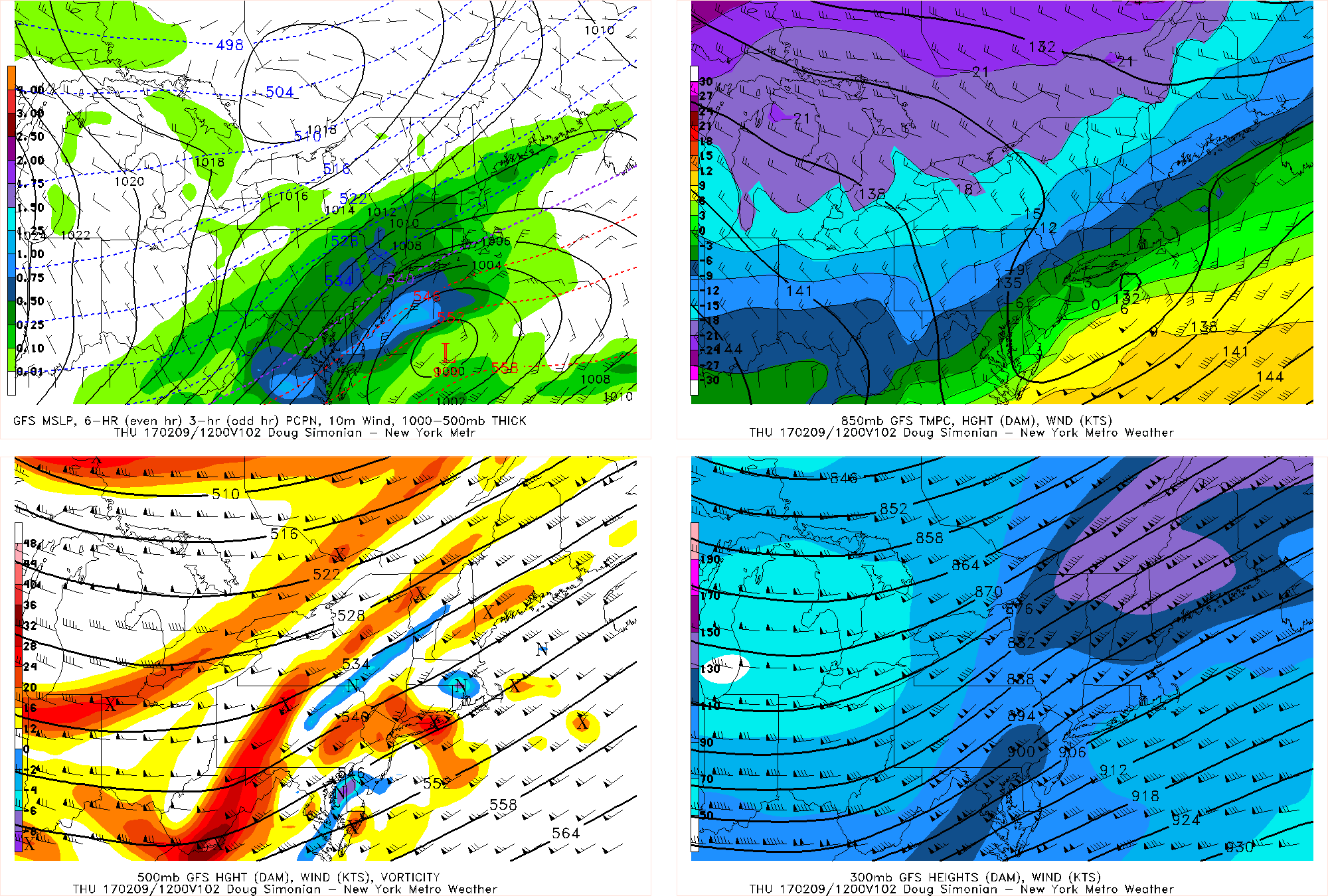6z GFS showing a wave low pressure further north on Thursday morning with 500mb shortwave energy amplifying and the local region sandwiched in between two jet streaks to north and south
