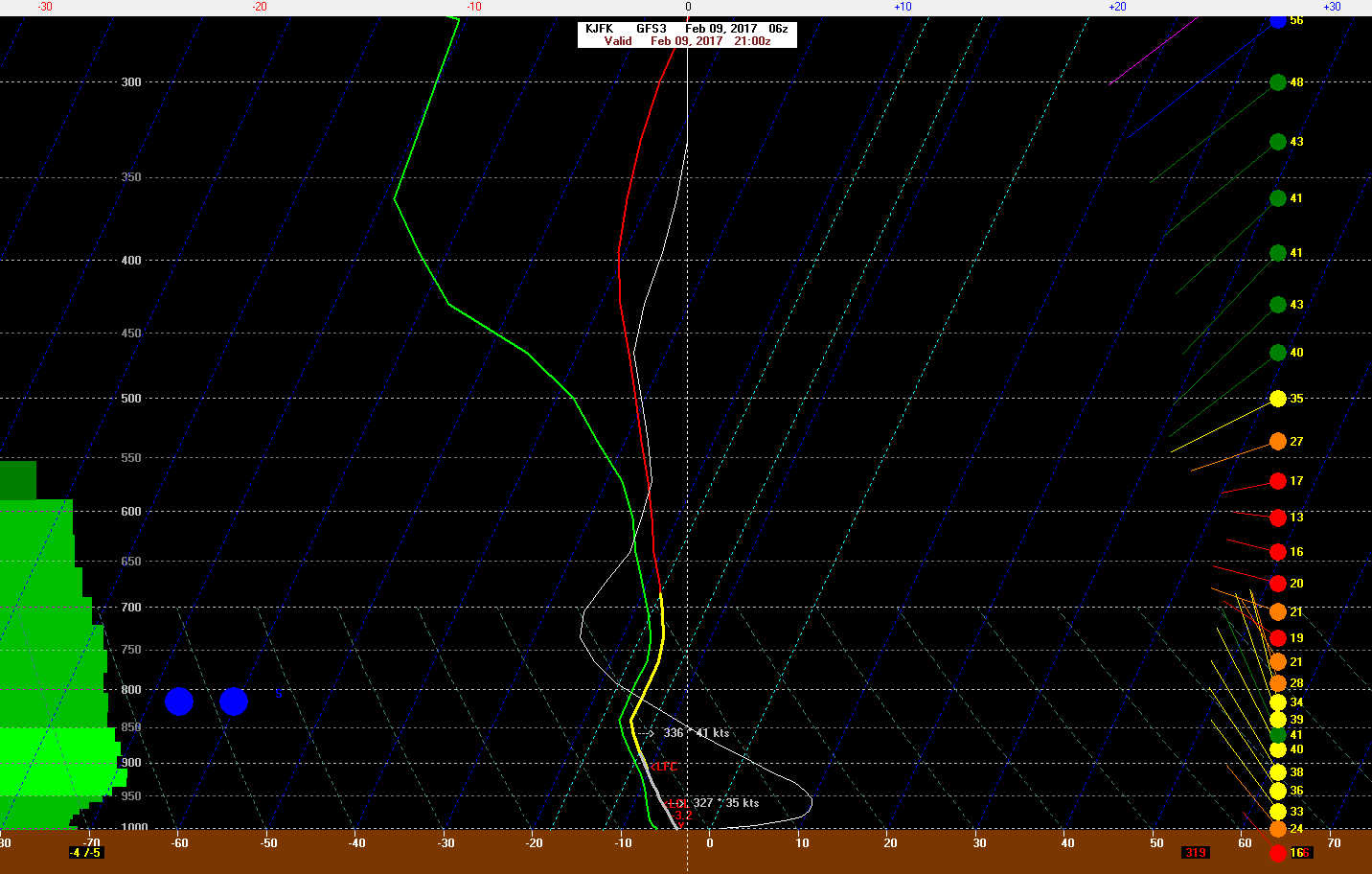 Also, a tight pressure gradient with some instability could lead to strong winds — gusting to between 30-40mph — over many parts of the region today. Over Long Island winds could gust to between 40-50mph, as stronger 850mb jet moves over that region later today. As a result, a Blizzard Warning has been issued for all of Long Island.