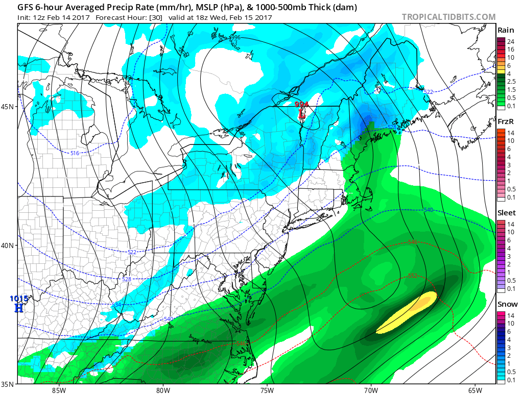 While the storm system could’ve been something more significant had it phased with a southern stream disturbance over the Southeast States, it will remain progressive and transient. The main effects from the system will come in the form of a cold front, which will sweep through the Northeast states late Wednesday into Thursday. More snow is anticipated in Maine as the system passes by.
