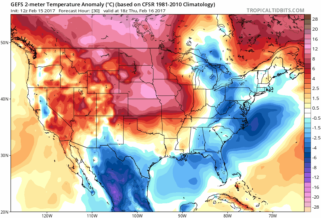 Thereafter, the weather will take a more tranquil and warmer turn. The same ridge over the West Coast which was responsible for driving the polar disturbance southwards today will collapse eastwards, rolling over into the Central and eventually Eastern U.S.A. This is significant for a few reasons. First, it allows Pacific, maritime air to move eastwards with the ridge circulation as it collapses. But second, it also cuts off the arctic and polar air source into the Northern 1/3 of the U.S.A, at least temporarily.