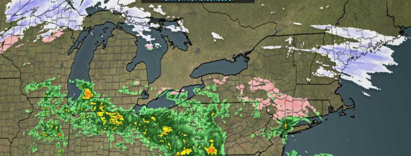 A storm system tracking over the Great Lakes, will bring some periods of rain with possibly freezing rain over Interior this morning. Some very mild and record breaking temperatures also possible on Wednesday. But more attention is already on possible snowstorm starting late Wednesday night and last into Thursday. Details are still yet to be ironed. But confidence is growing on moderate to significant snowfall for parts of the area.