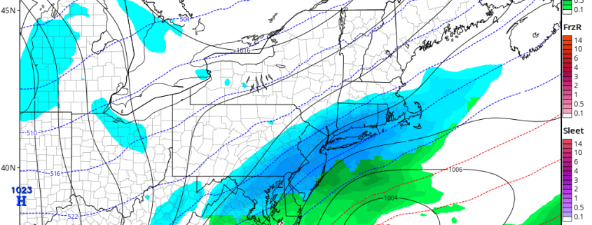Some freezing rain is possible over the inland areas this morning. This is ahead of an approaching warm front from the the south. Warmer air has already intruded aloft. But surface temperatures are in the upper 20s to lower 30s over many of the higher elevations, over Northwest NJ, Lower Hudson Valley and Connecticut. The National Weather Service has issued freezing rain and winter advisories for these areas this morning. Lower dewpoints, may also allow for temperatures currently in middle 30s, a little further south and east, to drop to near freezing briefly, as rain begins this morning.