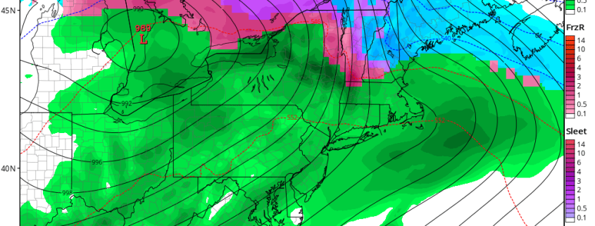 A low pressure system drives well to our northwest from late tonight into Tuesday, over the Great Lakes and Southeast Canada. Warmer air in all levels of the atmosphere will take over, with southwesterly winds in much of the region. Precipitation will start and end as rain, beginning on Tuesday afternoon and ending during the morning hours on Wednesday.