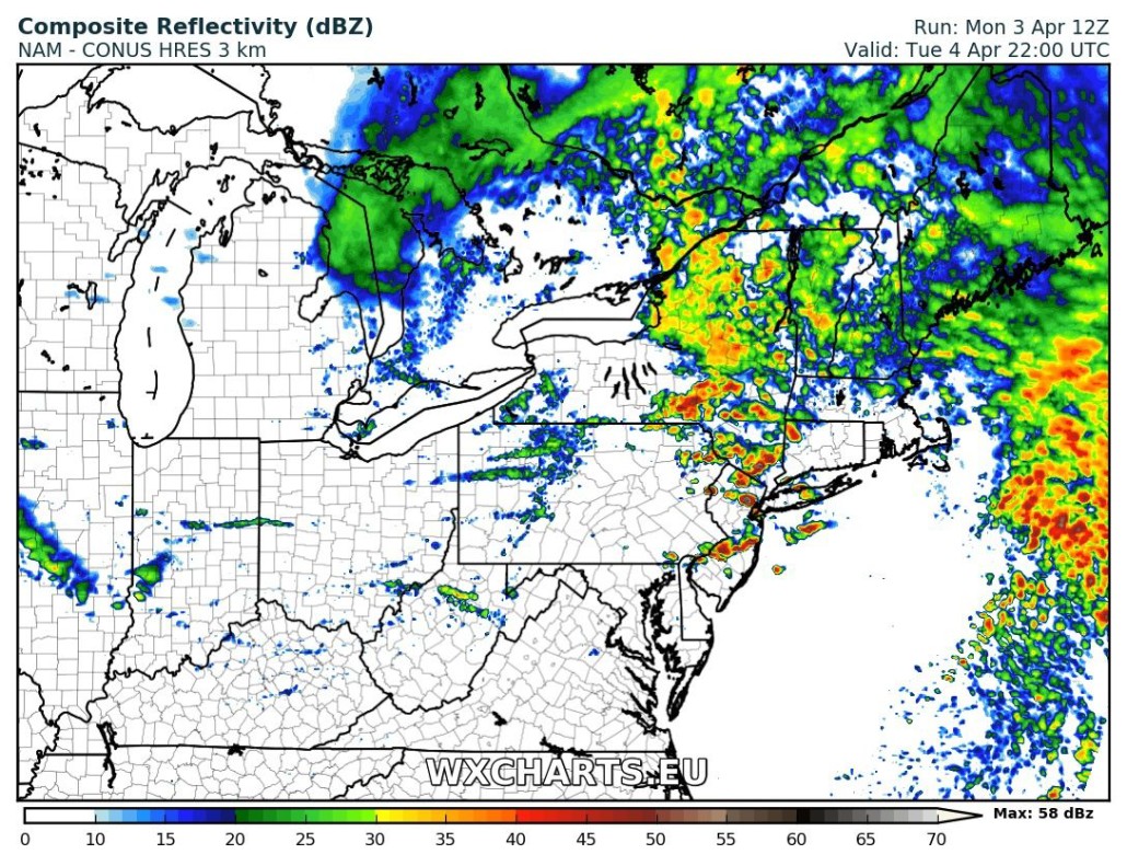 But the warm front will likely be slow to progress northward during the day on Tuesday, due to more northeast winds and rainfall enhancing a marine layer to the northeast. Cloud cover, areas of patchy fog and drizzle could possible stick around into much of the afternoon from NYC on north and east. High temperatures will likely be reached late in the day, possibly in the mid-upper 50s to lower 60s.