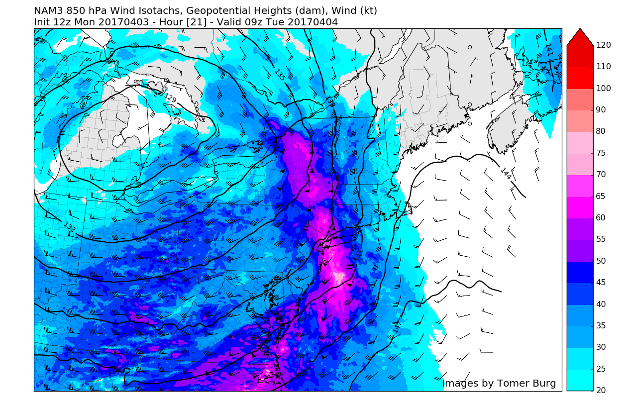 3km NAM keeping the warm front south over Central NJ with temperatures in much cooler temperatures further north tomorrow afternoon