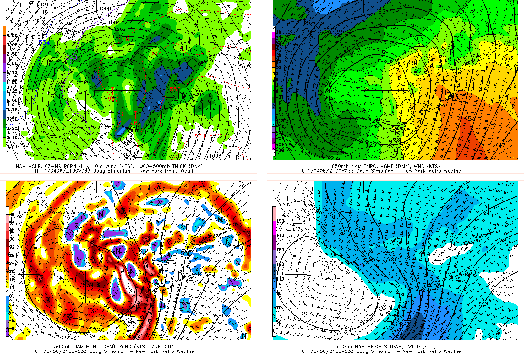 NAM model strong 500mb vorticity and divergence from 300mb leading the very heavy rainfall over the region tomorrow afternoon.
