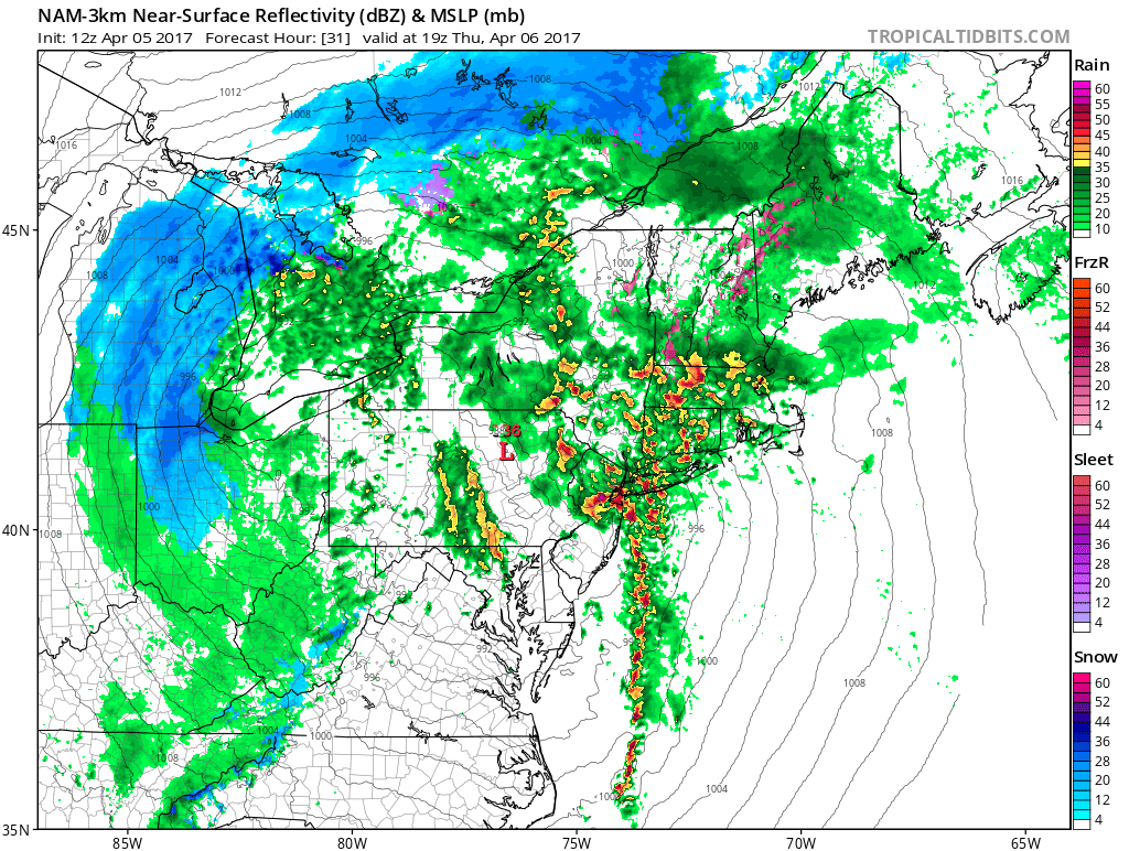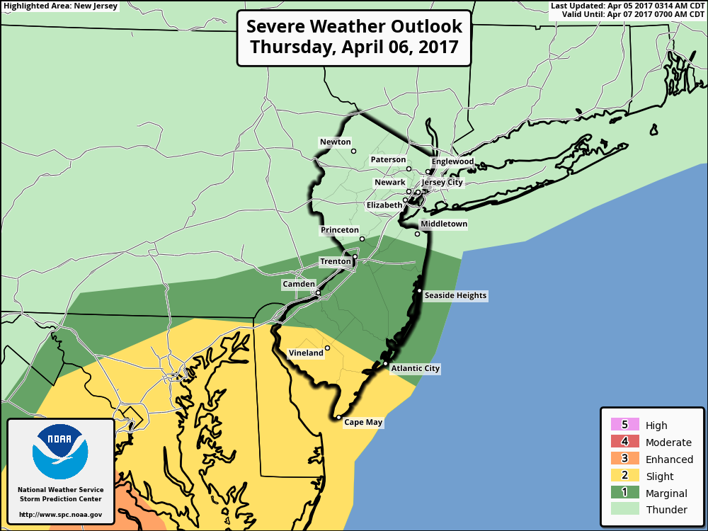 The Storm Prediction continues a marginal and slight risk for severe weather southern parts of the region on Thursday. There will likely one or two lines of strong to severe thunderstorms move northward out Chesapeake Bay/Delmarva region. Some isolated strong to severe thunderstorms with damaging winds can’t be ruled over Central-Southern NJ and Southeast PA, if these areas get into the warm sector briefly. But overall the severe weather will be mitigated by more stable marine airmass over the region.