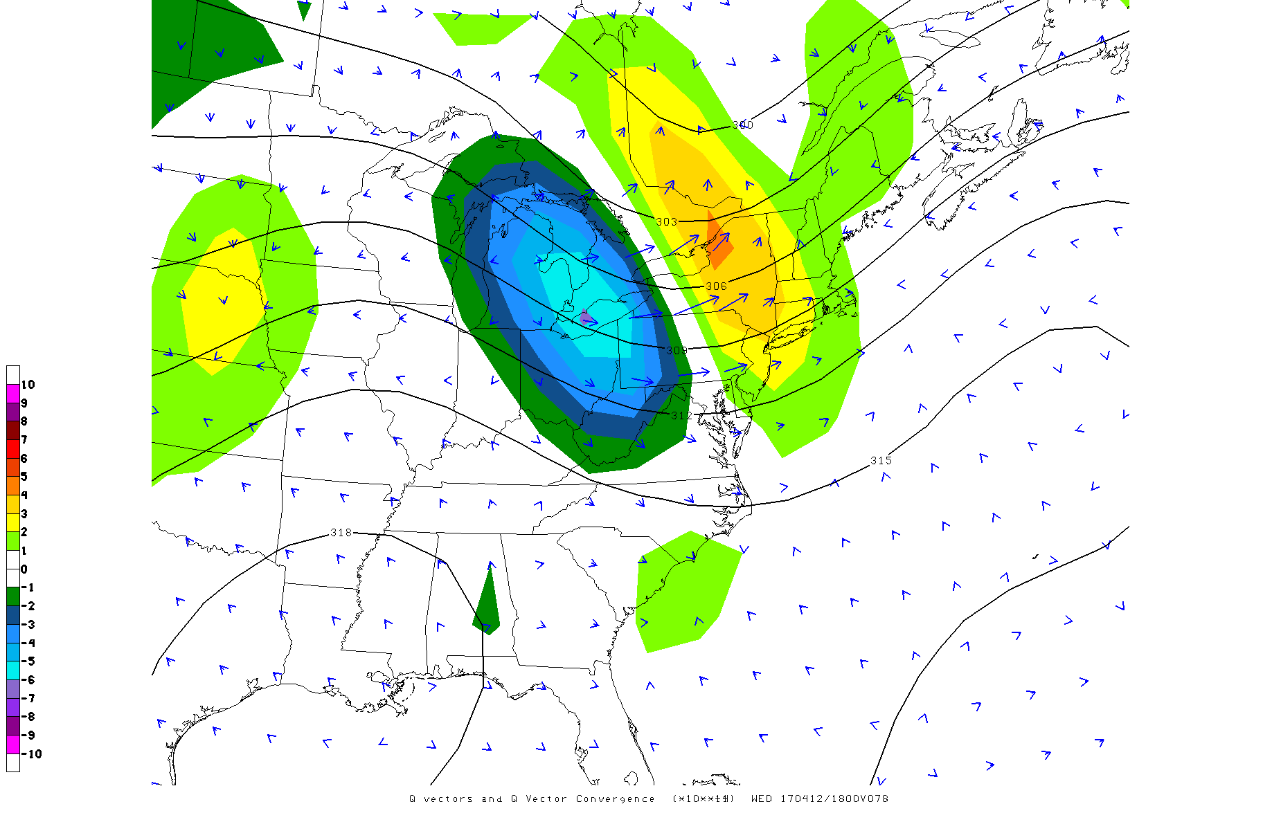 Today’s GFS model valid for Wednesday afternoon shows decent forcing for lift, and thus some showers.