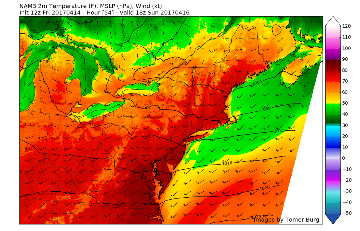 This afternoons 3km NAM showing temperatures in the upper 70’s to mid 80’s across the entire area for Easter Sunday