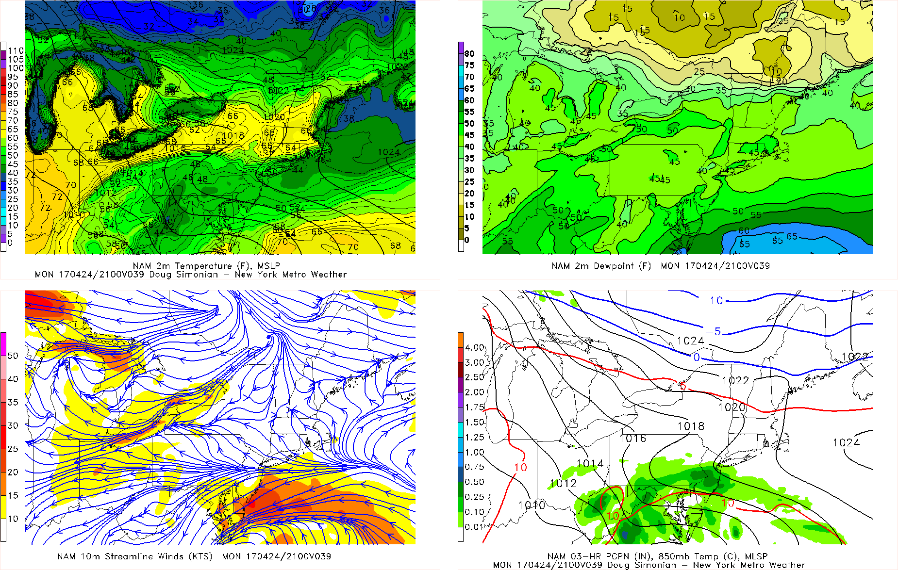 Temperatures with more cloud cover and an onshore easterly flow, will likely struggle to get out of 50s during the day. But some places that see more sunshine north of NYC, will have better shot temperatures reaching the lower 60s. Temperatures tonight will drop into the 40s with a marine airmass over the region.