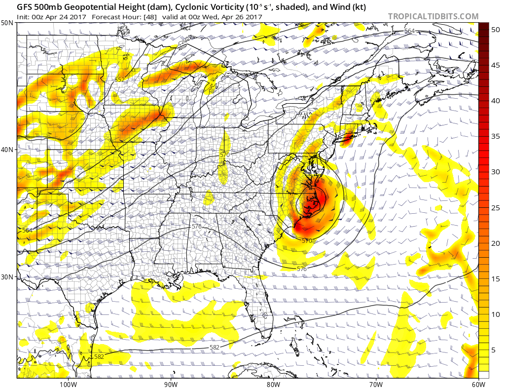 Some cooler and unsettled for will be around through middle of this week, as cut-off low slowly moves northward along the East Coast. Best chance of rainfall will be between late Tuesday and early Wednesday. Then more improving weather with a warming trend is likely late in the week into the weekend, as a ridge begins building over the East Coast. A more detailed forecast breakdown is below!
