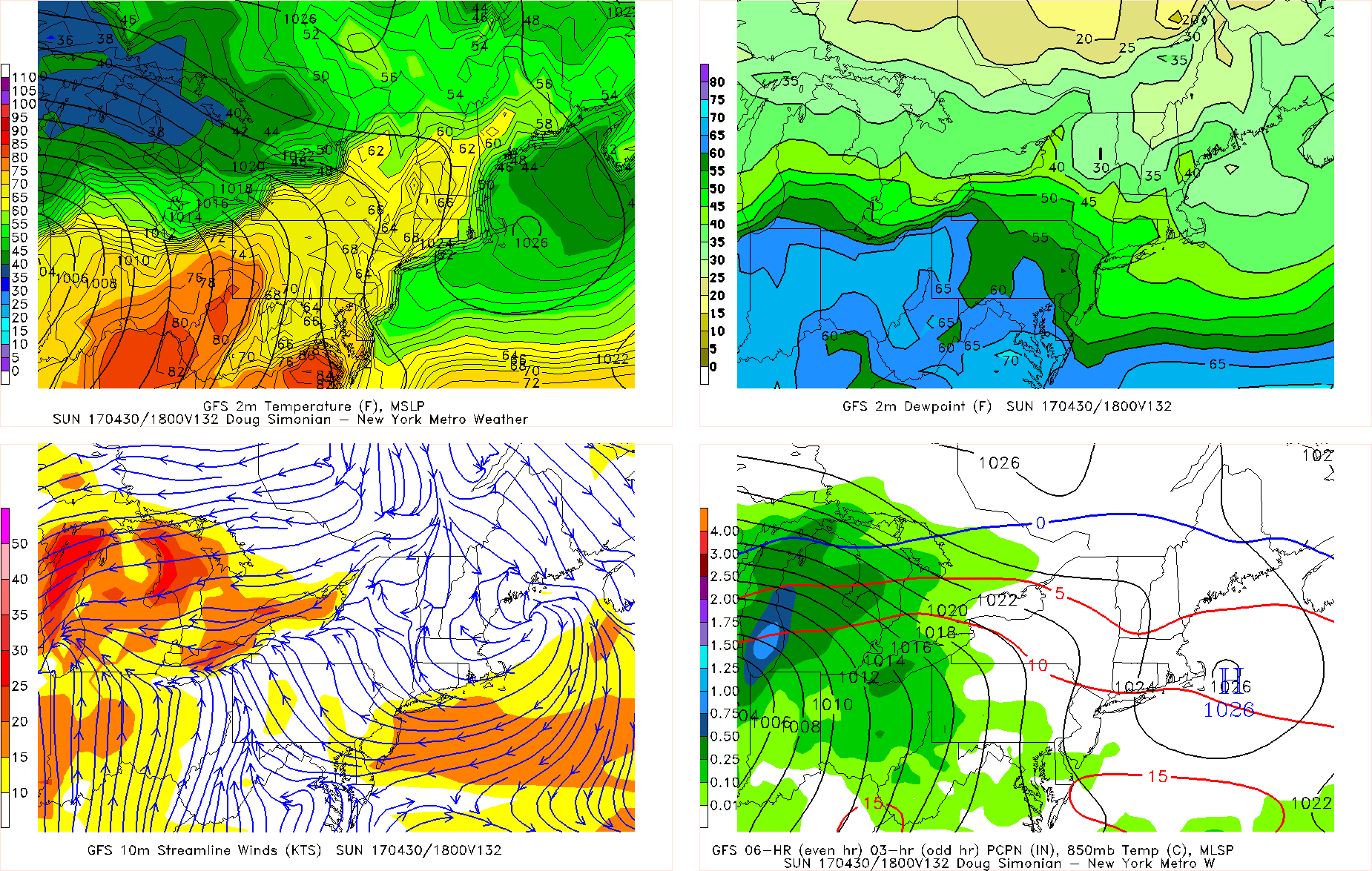 The latest GFS model showing the backdoor cold front with onshore winds dropping temperatures back into 50s or 60s on Sunday afternoon