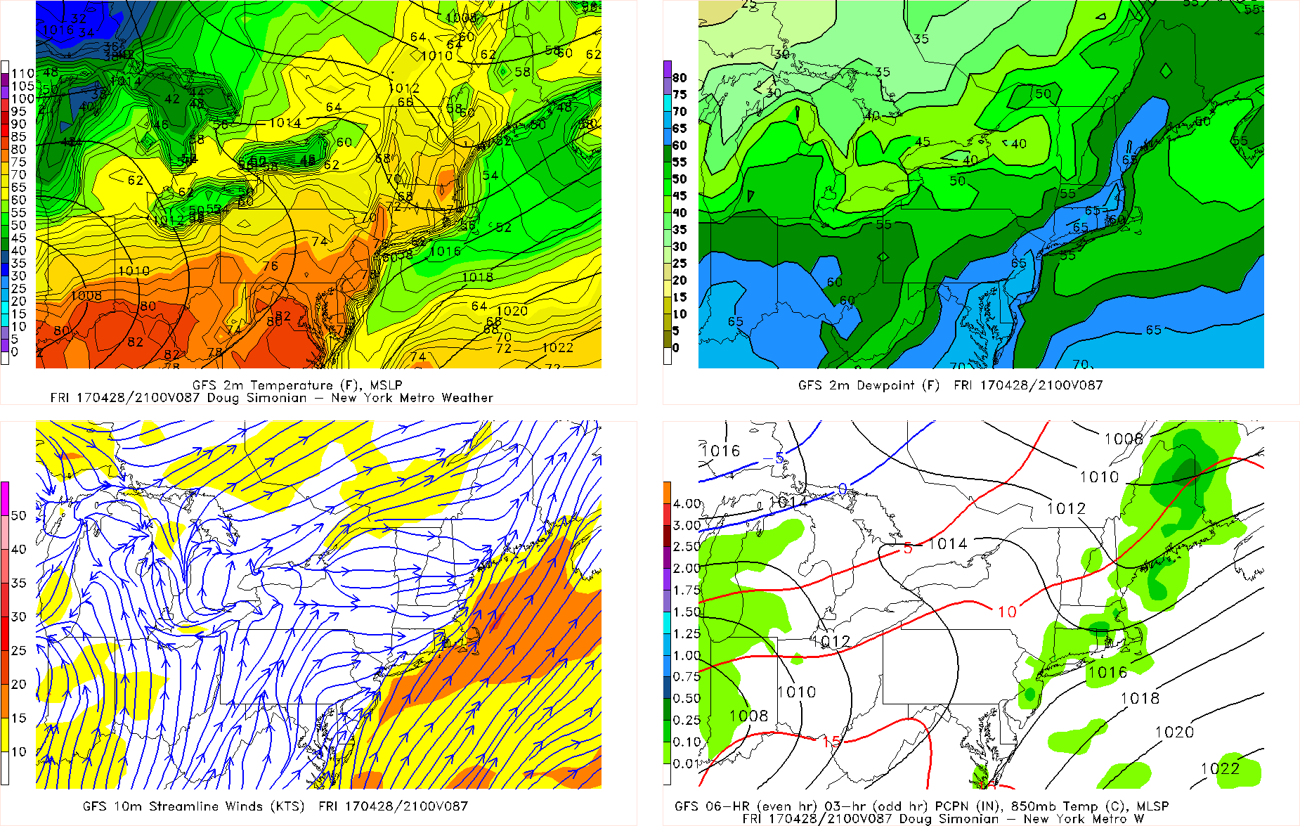 GFS showing warmer temperatures inland with southwest winds on Friday ahead of a cold front with some scattered showers.
