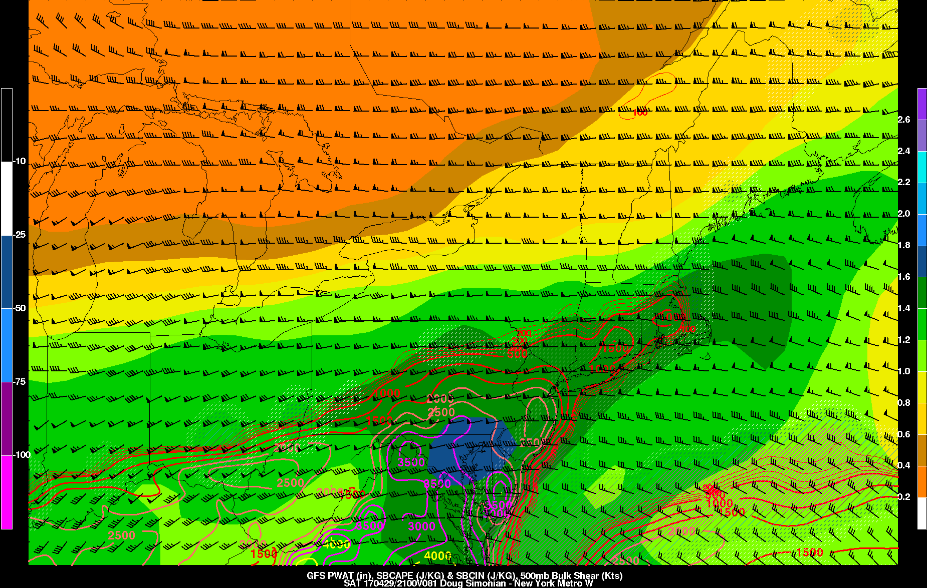 The big question is what happens with our atmospheric instability on Saturday as it pertains to thunderstorms. There will be a strong disturbance moving through Southeast Canada which will try to send a backdoor cold front towards the area, but at the same time there will be a further strengthening ridge in the West Atlantic, which may try to send even warmer air our way. The gradient that results will lead to very strong westerly flow aloft, which may be able to transport an Elevated Mixed Layer (EML) into the atmosphere from the west. This is often a precursor to severe weather outbreaks in the Northeast.