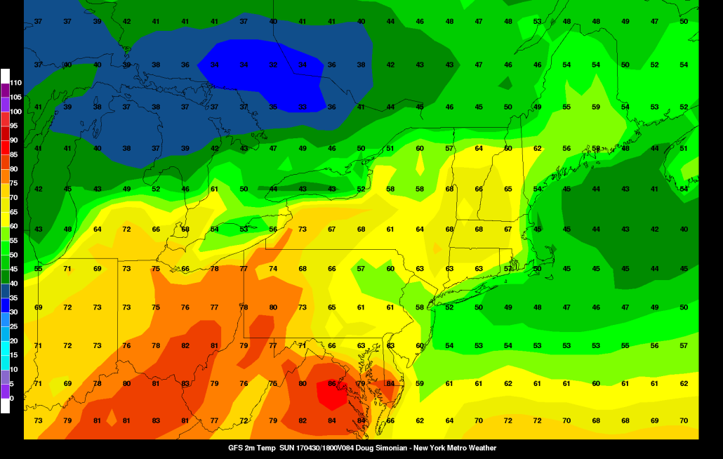 Overall more pleasant weather is in store for the weekend, as upper-level ridge builds over the region. Saturday continues to look like a very warm, summer-like day with partly sunny skies. West-southwest winds will help temperatures rise into the low to mid 80s, across the region. Some afternoon sea-breezes may keep coastal areas from rising out of the 70s. But just about every areas should be still be very warm and dry for most of the day.