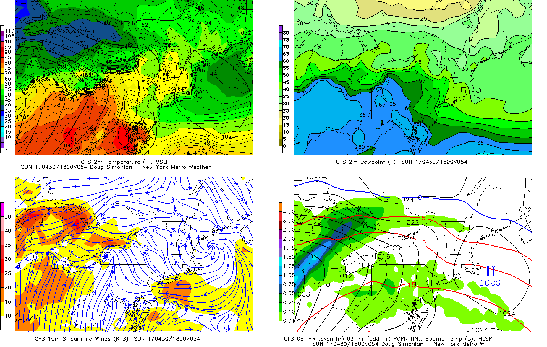 On Sunday, a cooler maritime airmass will be over the region with more onshore winds, behind the cold front. Much of the day will likely feature some clouds and sunshine, as high pressure noses from the north. High temperatures are expected to be low to mid 60s. Then backdoor cold front will being return northward as warm front with more clouds and scattered showers possible Sunday night.