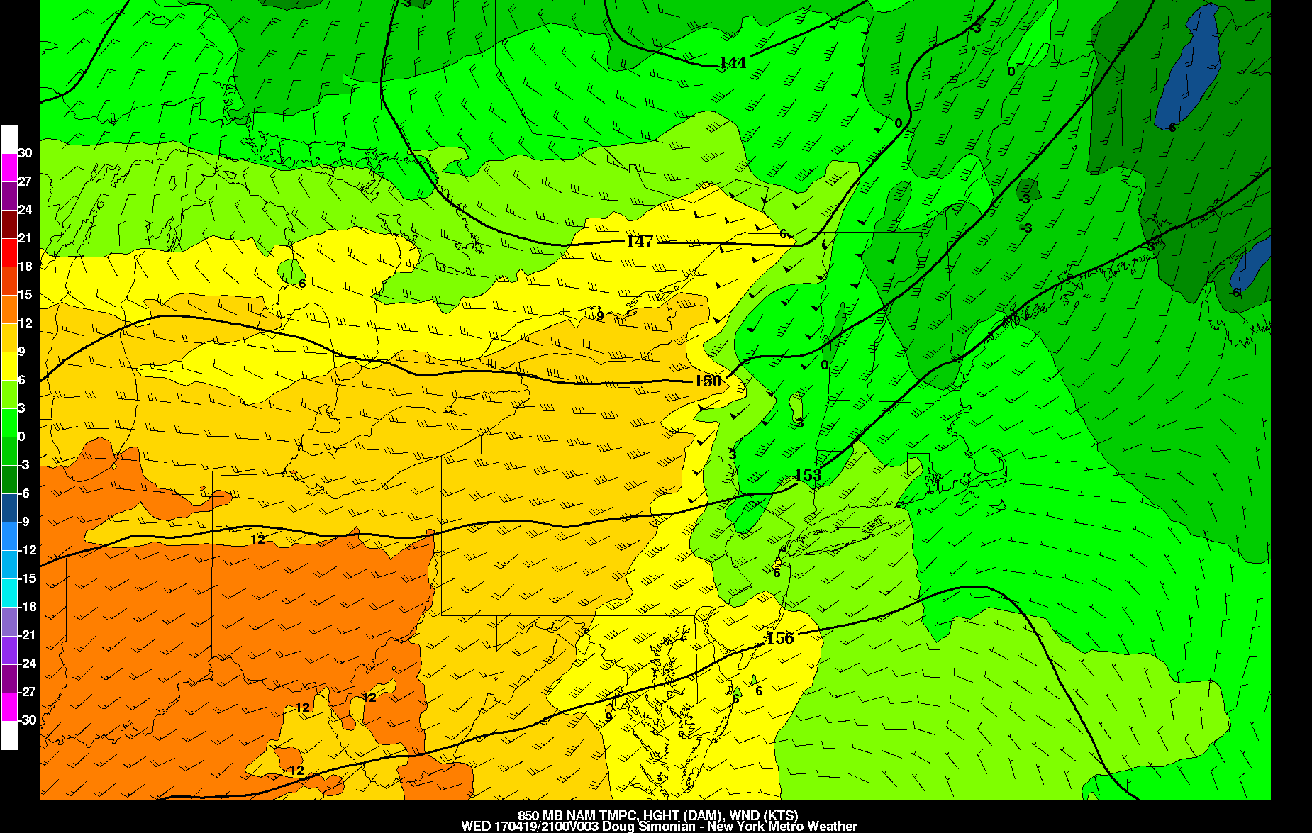 With this aforementioned cloud cover and the back door cold front established well to our south and west, temperatures in North and Central New Jersey, as well as points to the north will struggle to reach out of the mid 50’s this afternoon. Further south into southern portions of New Jersey as well as southeast Pennsylvania, we may see temperatures reach into the low to middle 60’s, but this is highly dependent on whether or not if the warm sector in central Pennsylvania is able to advance during the late afternoon hours.