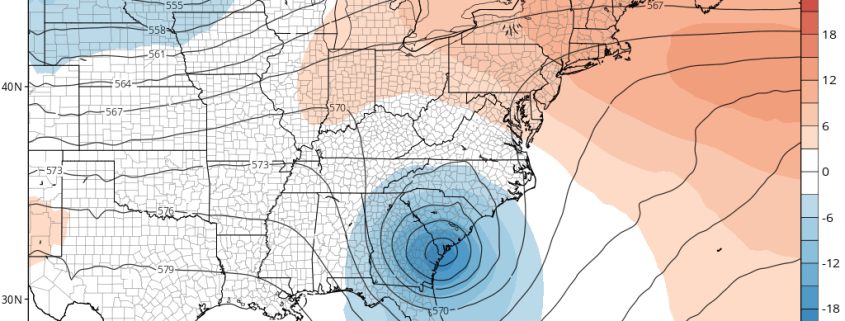 As of right now, we expect that this system will not be able to gain enough latitude once it reaches the southeast coast to impact our area with any significant rains or winds at this time. High pressure centered in Canada will likely keep this system offshore throughout this period, but this system will need to be monitored, as a small deviation in overall setup could chance the forecast quite a bit.