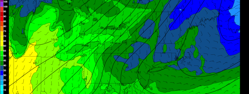 12z European model showing the main area of low pressure tracking well to our north on Friday morning, bringing in a more moist/unstable airmass with the potential for heavy showers and even thunderstorms (Valid 2am Friday)