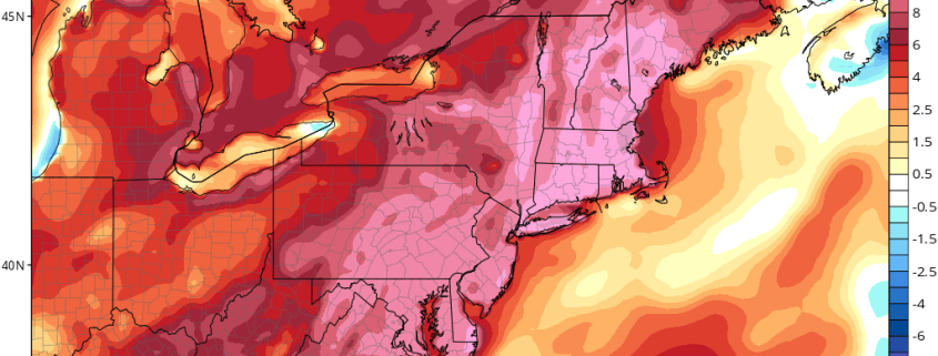 12z European model showing temperature anomalies ranging from 20-30 degrees above normal on Sunday afternoon with temperatures possibly reaching into the 80’s once again (Courtesy of Accuweather Pro)