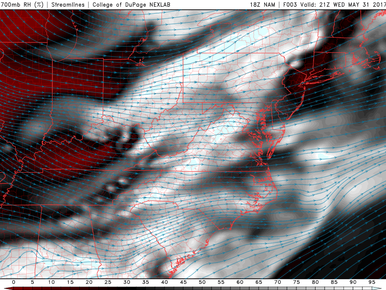 The cold front that is responsible for these showers and thunderstorms will begin to overspread the region very early tomorrow morning, around 5-8am. More dry air will likely be reinforced over the area as an area of high pressure also works its way towards the Northeast, thus giving way to mostly sunny conditions. These dry and relatively calm conditions tomorrow will allow highs to once again reach into the mid to upper 70’s, with some inland locations likely reaching into the 80’s by late-afternoon. Though things look rather tranquil, there is a very slight chance that some showers or thunderstorms could pop-up during the afternoon hours as another piece of energy embedded in a large upper-level low over our area rotates through. Any shower activity would likely be very limited in coverage and quite short-lived.