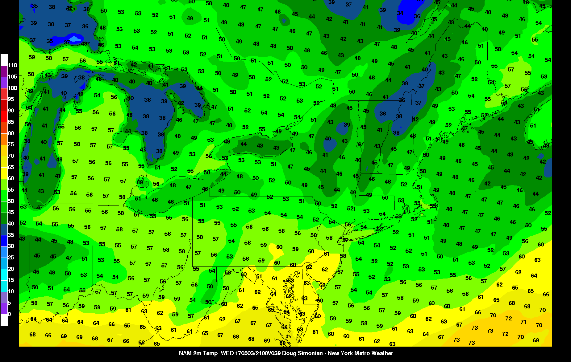 High pressure from Canada will be provide more pleasant but cooler weather Wednesday and Thursday. Temperatures will be several degrees below normal. Daytime highs will be in upper 50s to lower 60s over most of region. Clear to partly cloudy skies are expected again Wednesday night. Calmer winds may will lead to more radiational cooling. So low temperatures will be in mid-upper 40s around NYC and urban areas. Many of the suburbs drop down into the 30s.Then clouds will increase more Thursday night, as high pressure moves offshore and next storm system approaches. More cloud cover will keep temperatures from dropping out of the upper 40s to lower 50s for overnight lows.